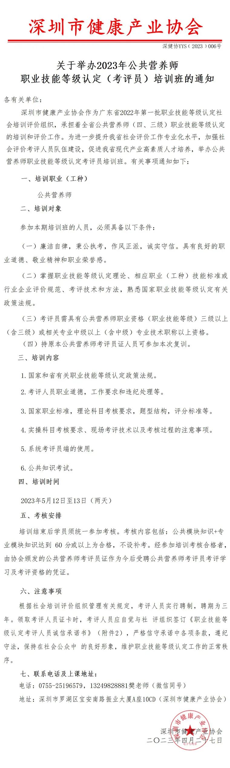 『通知』2023年公共營養師職業技能等級認定(考評員)培訓班的通知!